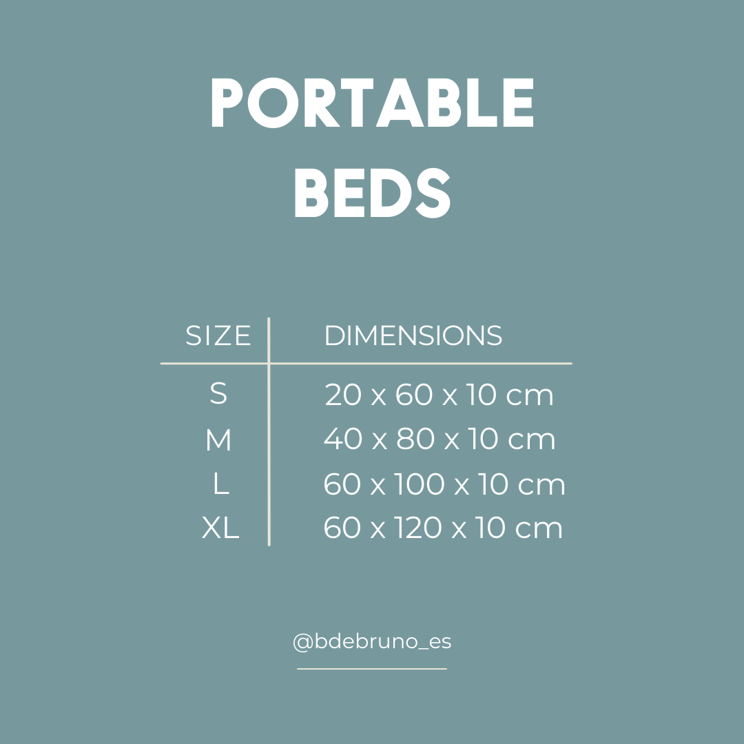Die Revolution all Ihrer Reisen und Ausflüge mit Ihrem Hund ist zweifellos Ihr bester Verbündeter. Unser tragbares Bett besteht aus Canvas mit Vichy-Aufdruck und ist mit Watte gefüllt. Es ist weich, weich und bequem, es wiegt nichts, es hat einen bequemen Tragegriff, es kann ganz in der Waschmaschine gewaschen und bei Lichtgeschwindigkeit getrocknet werden... Kannst du von einem Bett mehr verlangen?