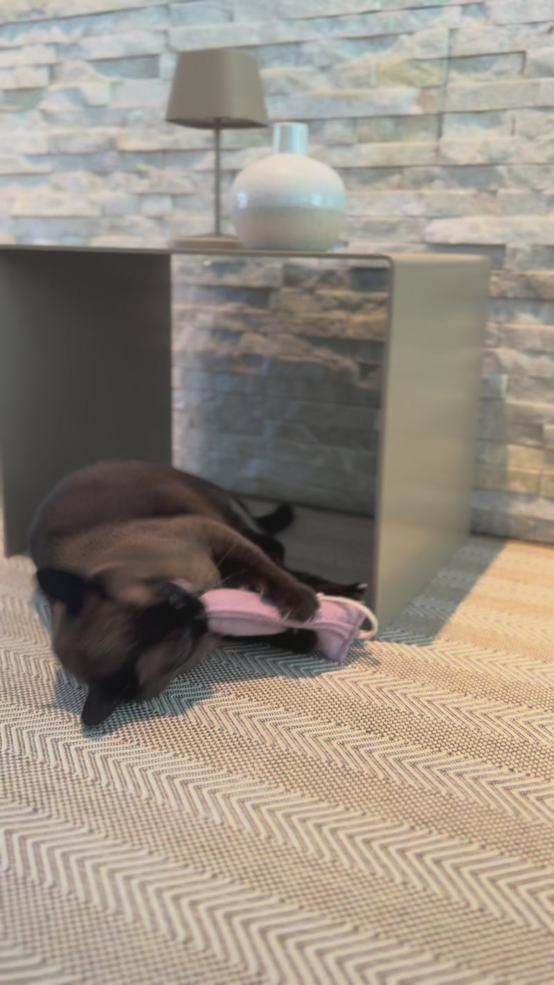 Katzenspielzeug Katzenkissen als Spielmaus für Katzen. Erhältlich mit Katzenminze Füllung und Baldrianfüllung. KATER KASIMIR produziert handgemachtes Katzenspielzeug in Deutschland. Jedes einzelne Spielzeug wird aus Naturmaterialien in liebevoller Handarbeit hergestellt. Damit bringt es Freunde in das Leben von Katzen.