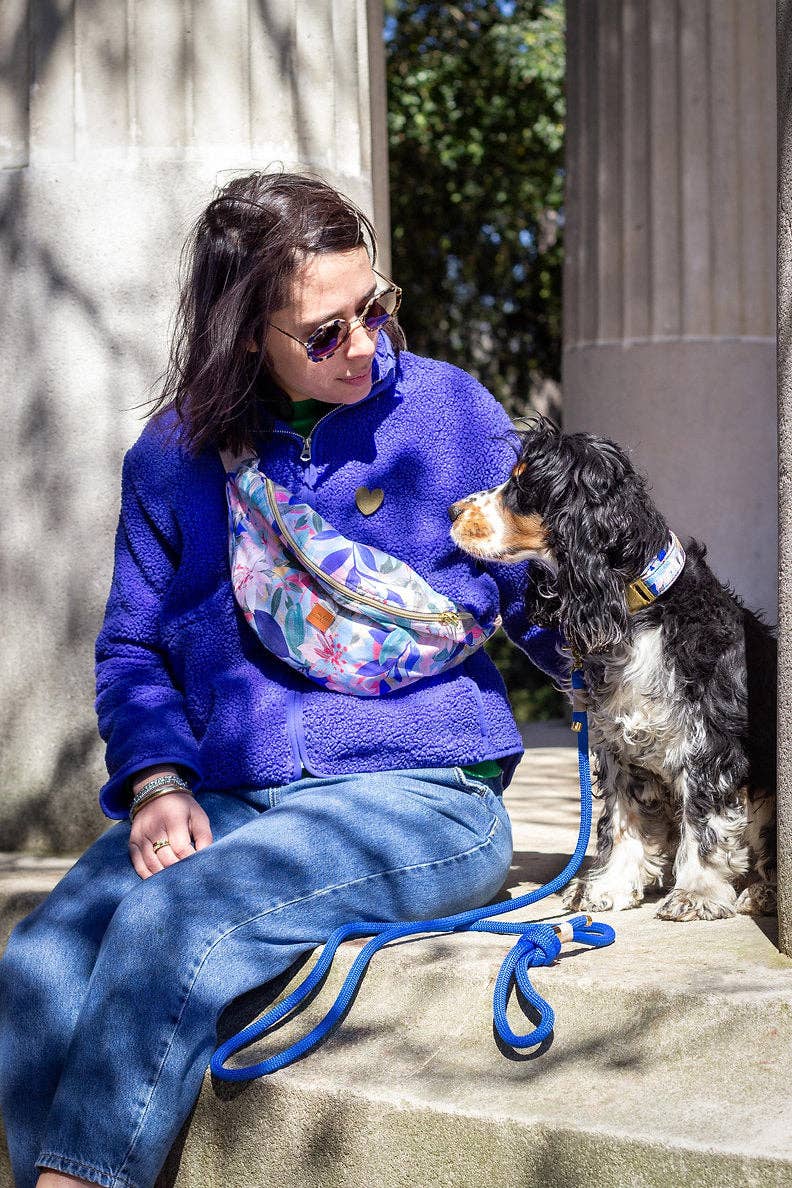 Machen Sie einen farbenfrohen Spaziergang mit unserer blauen Seilleine! Eine lebendige Farbe, ein weiches und festes Material, dieses Hundeaccessoire hat alles, was Ihnen gefällt. Größentabelle: Einfache Leine: 180 cm Leine mit mehreren Positionen: längste Länge 240 cm, verstellbar mit einem Ring Andere Längen auf Anfrage erhältlich Materialien: Kordel: 100% Nylon Goldene Schnallen: 100% massives Messing